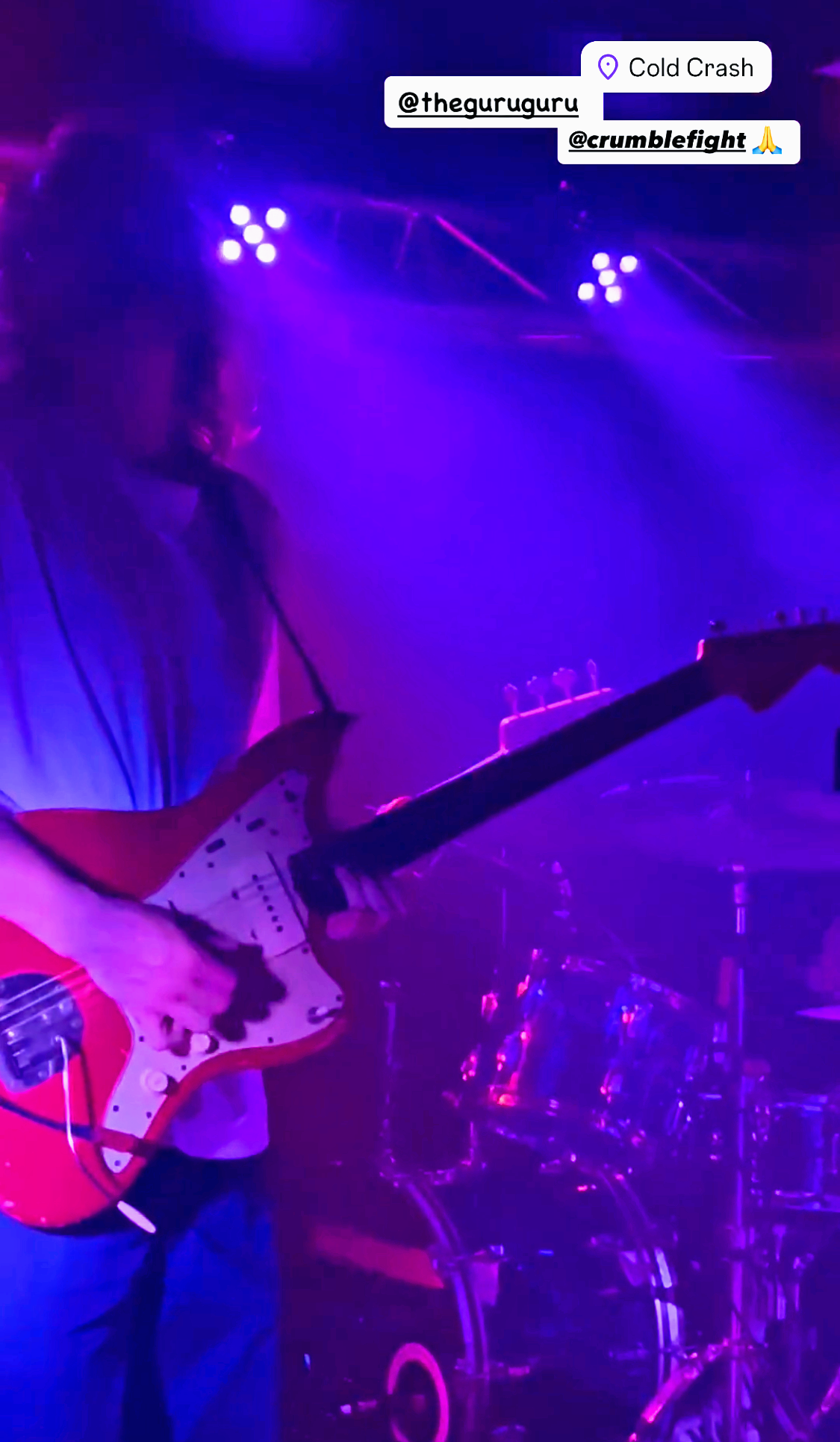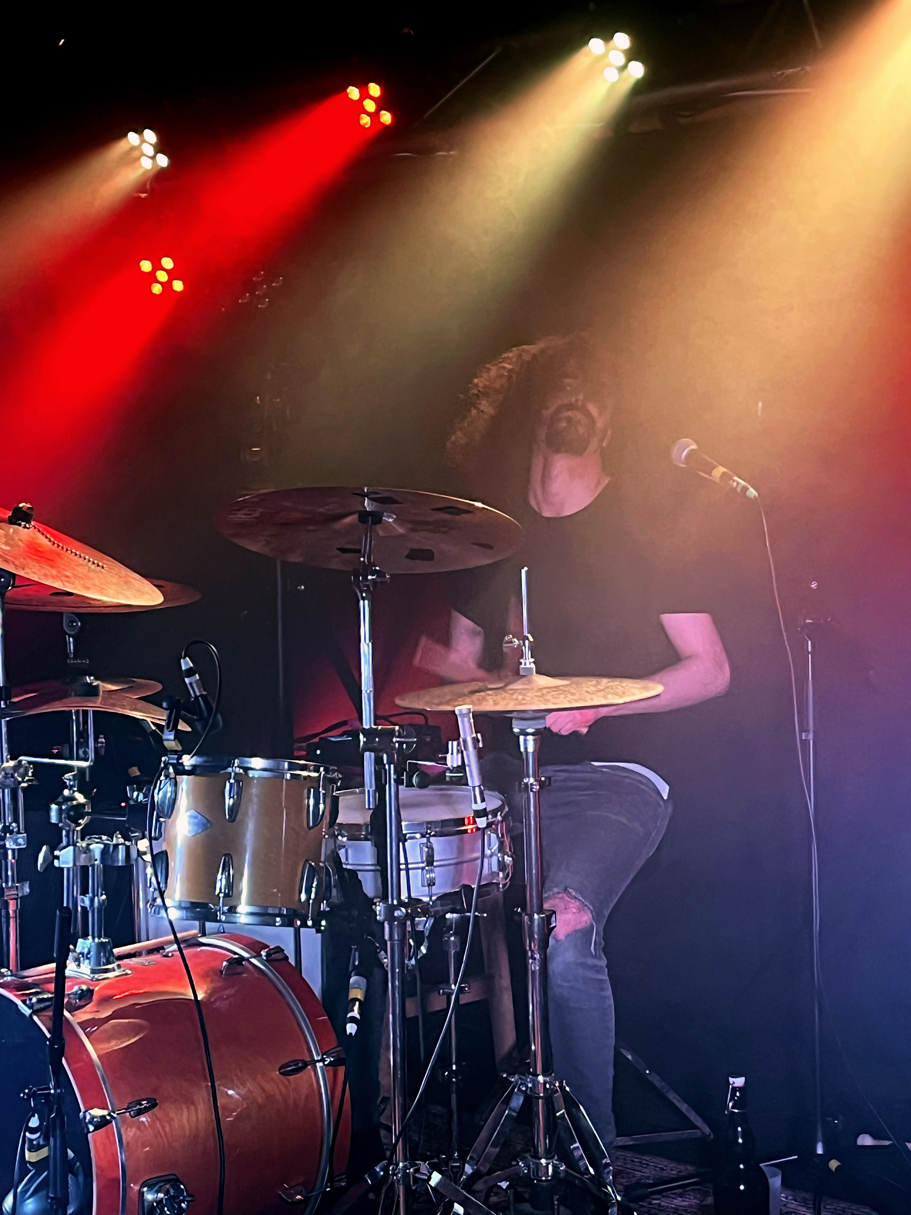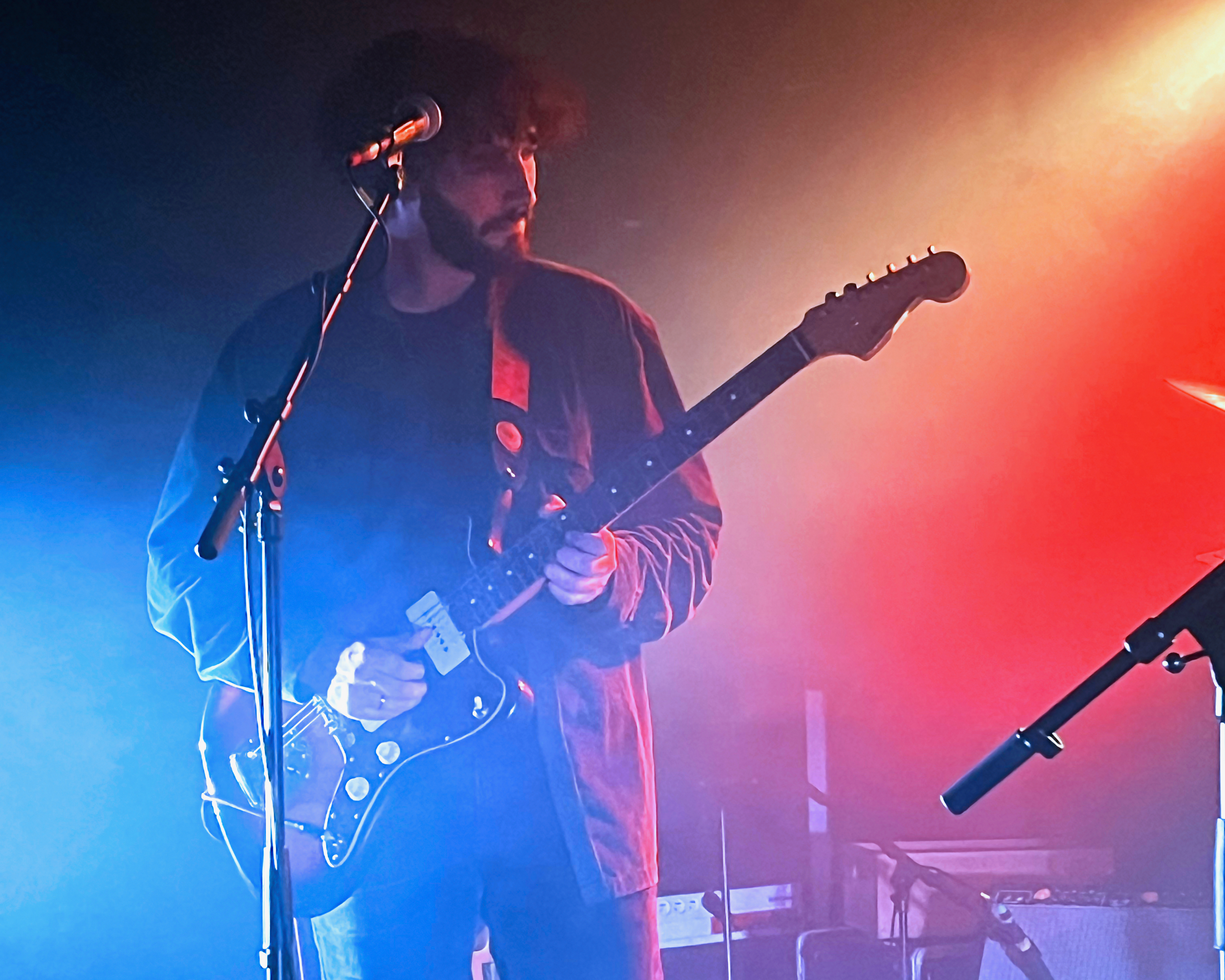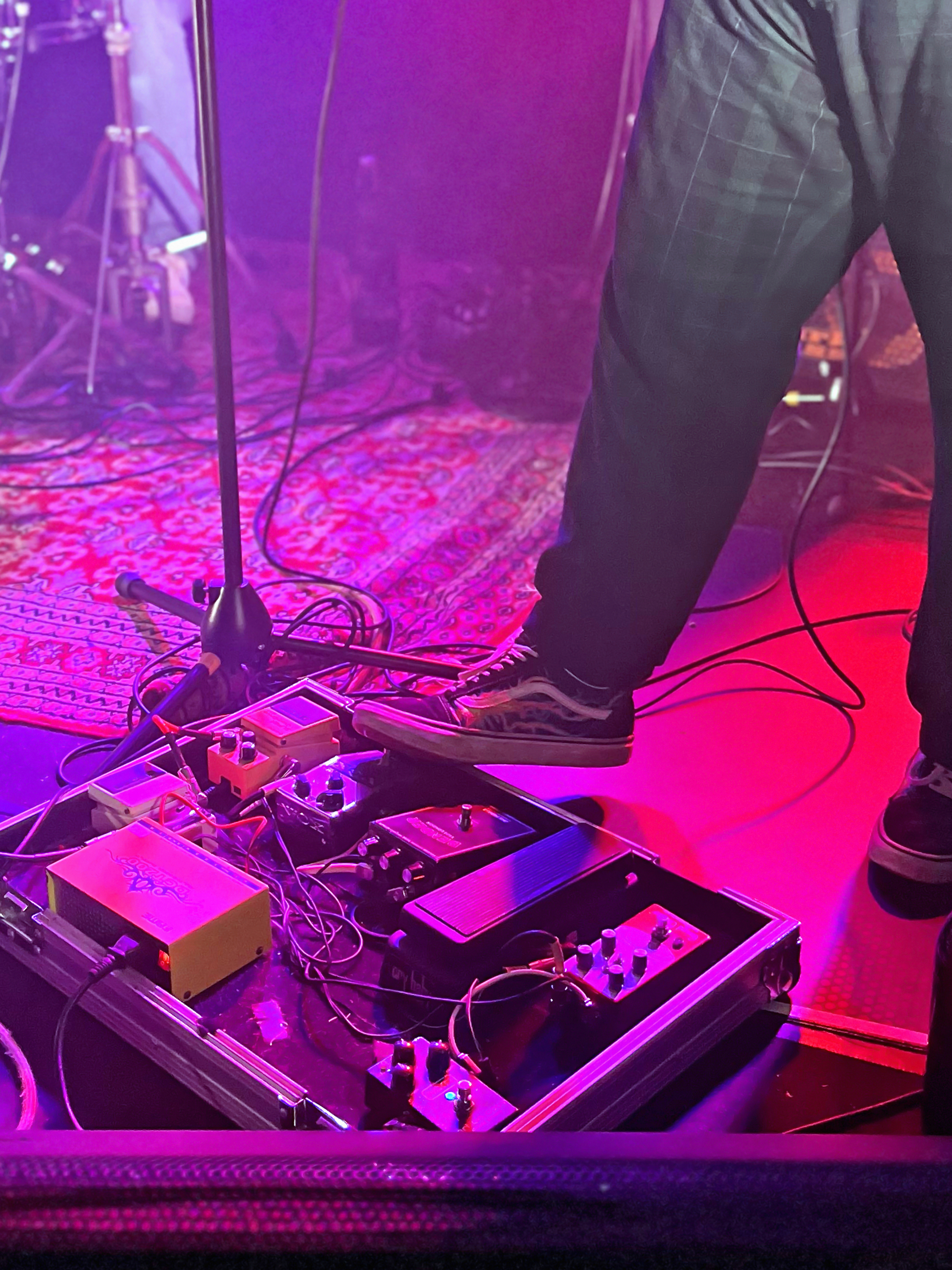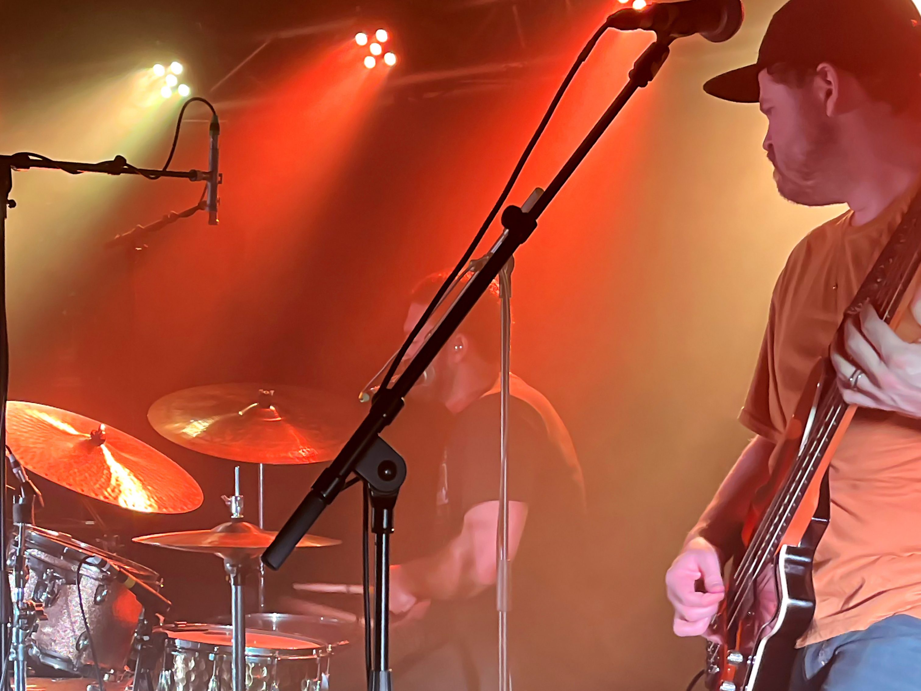 ⇢ Maîtrise parfaite des compo et de la scène, exécution des titres bien assurée, son propre, tout bien calé, musiciens maîtres de leurs moyens et de la scène qui savaient parfaitement quoi faire et où aller, enchainements des compositions et niveaux sonores équilibrés, groupe complètement dans les titres et ancrés dans la scène mais bien ouvert au public happé par les instru, englouti par les vibrations, enchaîné aux accords, frappé avec délectation par les fouets mélodiques… Osmose générale.