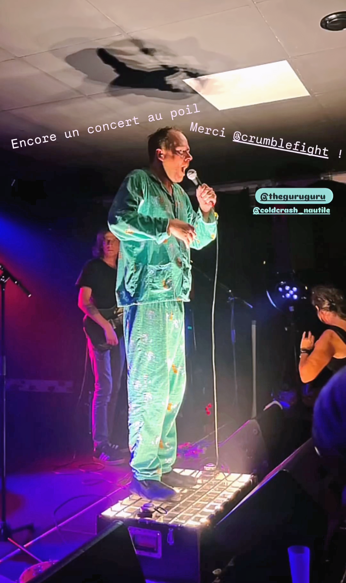 ⇢ JOYEUSEMENT FOU ! (déjà, le chanteur était en pyjama, c’est un bon indice. Ensuite, il s’est préparé pépouz’ un cocktail sur scène, ça confirme.)